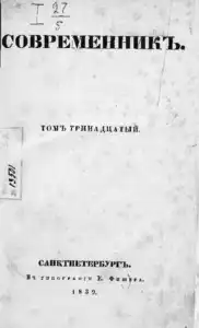 Современник изд. Н.А. Некрасов << < 1839 № 1 (13) > >> |