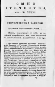 Сын Отечества 1812-1852 << < 1821 № 33 > >> |