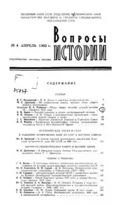 Вопросы истории изд. Российская Академия Наук << < 1962 № 4 > >> |