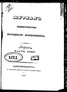 Журнал Министерства народного просвещения << < 1852 № 4 / т.74 вып.1 > >> |