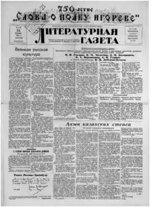 Литературная газета 1929- << < 1938 № 29 (736) > >> |