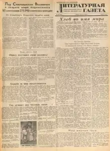 Литературная газета 1929- << < 1950 № 65 (2656) > >> |