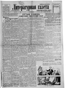 Литературная газета 1929- << < 1934 № 56 (372) > >> |