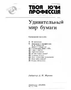 Народный университет. Твоя профессия. Издательство «Знание» << < 1984 № 10 > >>