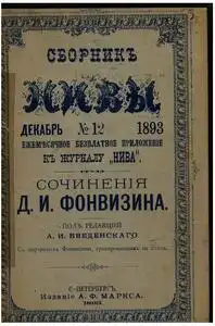 Ежемесячные литературные и научно-популярные приложения к журналу 'Нива' << < 1893 № 12 (Соч. Фонвизина) > >>