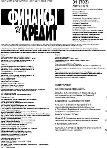 Финансы и кредит << < 2016 № 31 (703) > >>