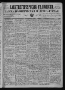 Санктпетербургские ведомости << < 1847 № 18 > >>