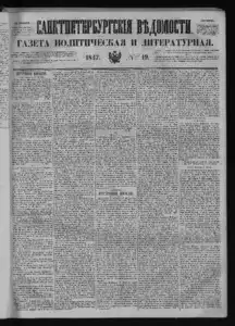 Санктпетербургские ведомости << < 1847 № 19 > >> |