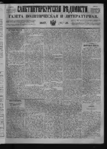 Санктпетербургские ведомости << < 1847 № 51 > >>