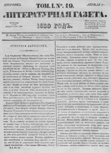 Литературная газета, издаваемая бароном Дельвигом << < 1830 № 19 / т.1 > >>