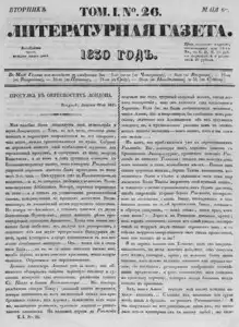 Литературная газета, издаваемая бароном Дельвигом << < 1830 № 26 / т.1 > >> |