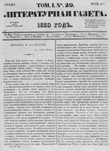 Литературная газета, издаваемая бароном Дельвигом << < 1830 № 29 / т.1 > >>