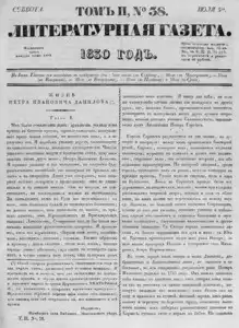 Литературная газета, издаваемая бароном Дельвигом << < 1830 № 38 / т.2 > >> |