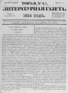 Литературная газета, издаваемая бароном Дельвигом << < 1830 № 41 / т.2 > >> |