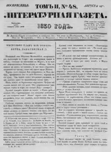 Литературная газета, издаваемая бароном Дельвигом << < 1830 № 48 / т.2 > >> |