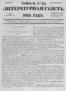 Литературная газета, издаваемая бароном Дельвигом << < 1830 № 52 / т.2 > >> |