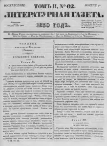 Литературная газета, издаваемая бароном Дельвигом << < 1830 № 62 / т.2 > >>