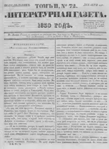 Литературная газета, издаваемая бароном Дельвигом << < 1830 № 72 / т.2 > >>
