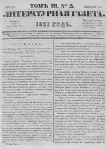 Литературная газета, издаваемая бароном Дельвигом << < 1831 № 5 / т.3 > >>