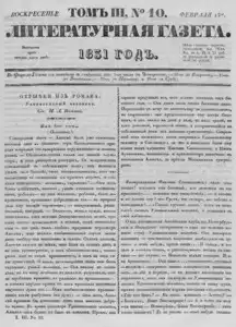 Литературная газета, издаваемая бароном Дельвигом << < 1831 № 10 / т.3 > >>