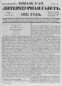 Литературная газета, издаваемая бароном Дельвигом << < 1831 № 27 / т.3 > >>