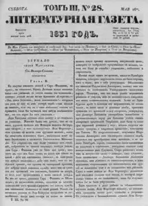 Литературная газета, издаваемая бароном Дельвигом << < 1831 № 28 / т.3 > >>