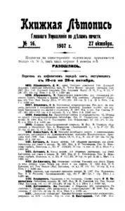 Книжная летопись Основной выпуск << < 1907 № 16 > >> |