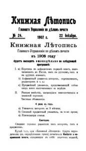 Книжная летопись Основной выпуск << < 1907 № 24 > >> |