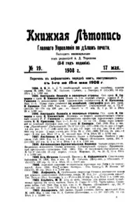 Книжная летопись Основной выпуск << < 1908 № 19 > >> |
