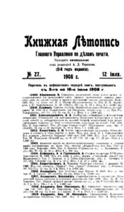 Книжная летопись Основной выпуск << < 1908 № 27 > >> |