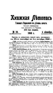 Книжная летопись Основной выпуск << < 1908 № 39 > >> |