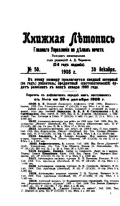 Книжная летопись Основной выпуск << < 1908 № 50 > >> |