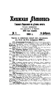 Книжная летопись Основной выпуск << < 1909 № 7 > >> |