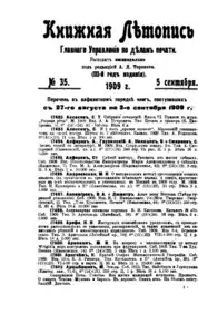 Книжная летопись Основной выпуск << < 1909 № 35 > >> |