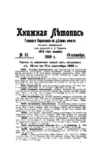 Книжная летопись Основной выпуск << < 1909 № 37 > >> |