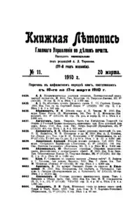 Книжная летопись Основной выпуск << < 1910 № 11 > >> |