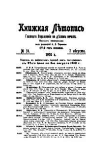 Книжная летопись Основной выпуск << < 1910 № 31 > >> |