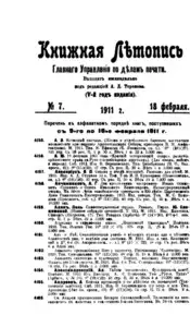 Книжная летопись Основной выпуск << < 1911 № 7 > >> |