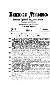 Книжная летопись Основной выпуск << < 1911 № 10 > >> |