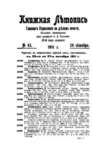 Книжная летопись Основной выпуск << < 1911 № 43 > >> |