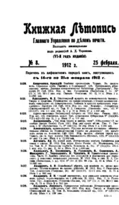 Книжная летопись Основной выпуск << < 1912 № 8 > >> |