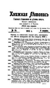 Книжная летопись Основной выпуск << < 1913 № 10 > >> |