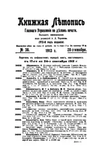 Книжная летопись Основной выпуск << < 1913 № 38 > >> |
