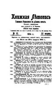 Книжная летопись Основной выпуск << < 1914 № 12 > >> |