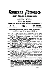 Книжная летопись Основной выпуск << < 1914 № 13 > >> |