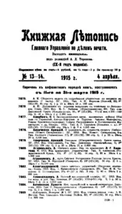 Книжная летопись Основной выпуск << < 1915 № 13-14 > >> |