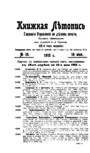 Книжная летопись Основной выпуск << < 1915 № 19 > >> |