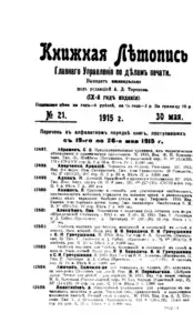 Книжная летопись Основной выпуск << < 1915 № 21 > >> |