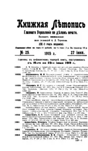 Книжная летопись Основной выпуск << < 1915 № 25 > >> |