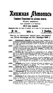Книжная летопись Основной выпуск << < 1915 № 44 > >> |